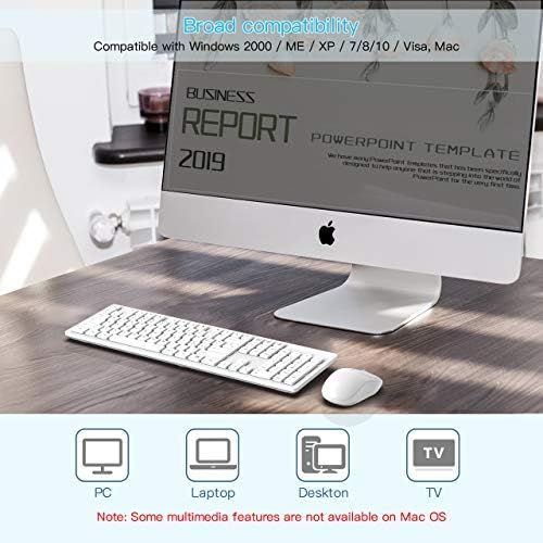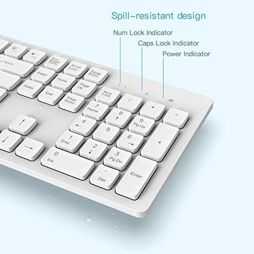 Wireless Keyboard Mouse Combo, WisFox 2.4GHz Slim Full-Sized Advanced Soundless Wireless Keyboard and Mouse Combo with USB Nano Receiver for Laptop, PC – White, English/Arabic